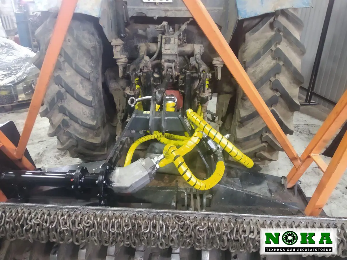 Опытными специалистами команды НОКА ТЕХ была проведена качественная и оперативная гидрофикация мульчера. Мастера быстро установили измельчитель на трактор и приступили к проверке работоспособности гидравлической системы. Был произведен тестовый запуск, настройка давления предохранительного клапана.
